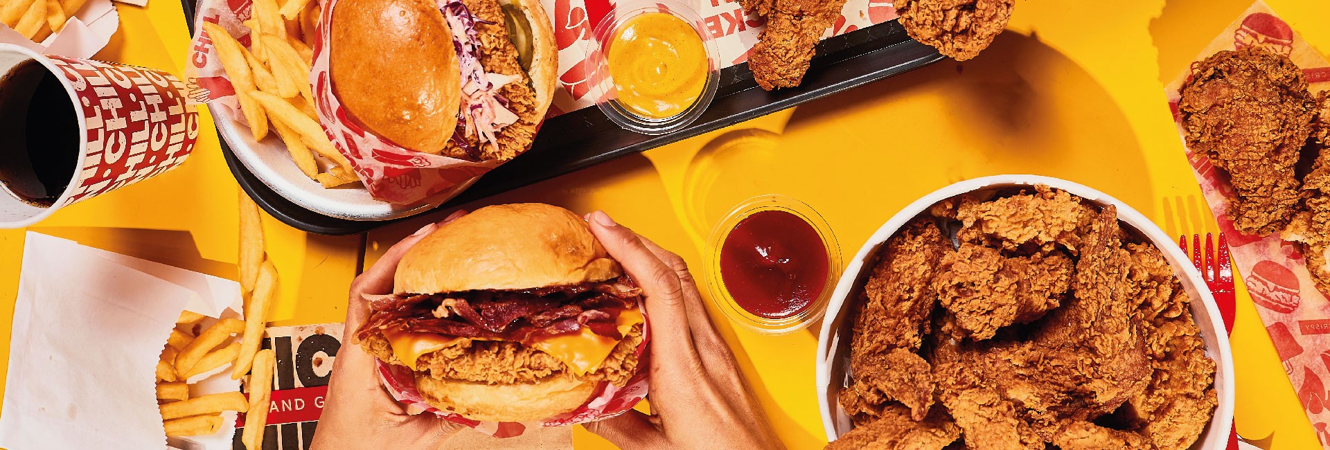 Combinan los clásicos como cheddar, tomate y lechuga, hasta pepinillos encurtidos y cole slaw. Otros atributos de la marca, son las opciones de salsa para combinar con los sandwich y finger food como la salsa spicy, para los valientes y aventureros que buscan una explosión de sabor, a la tradicional honey mustard, pero sobre todo y la que nos diferencia es la Chicken Chill sauce, con un sabor agridulce, ideal para el maridaje con nuestros sabores crispy.